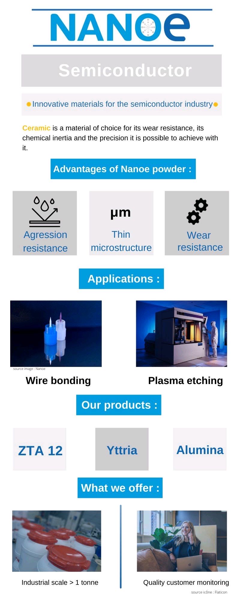 法国NANOE针对半导体领域的高纯度纳米粉体应用:plasma echting等离子刻蚀:高纯度纳米氧化钇和氧化铝wire bonding陶瓷劈刀:zta 12以及含铬zta为全球知名半导体领域厂商长期供货